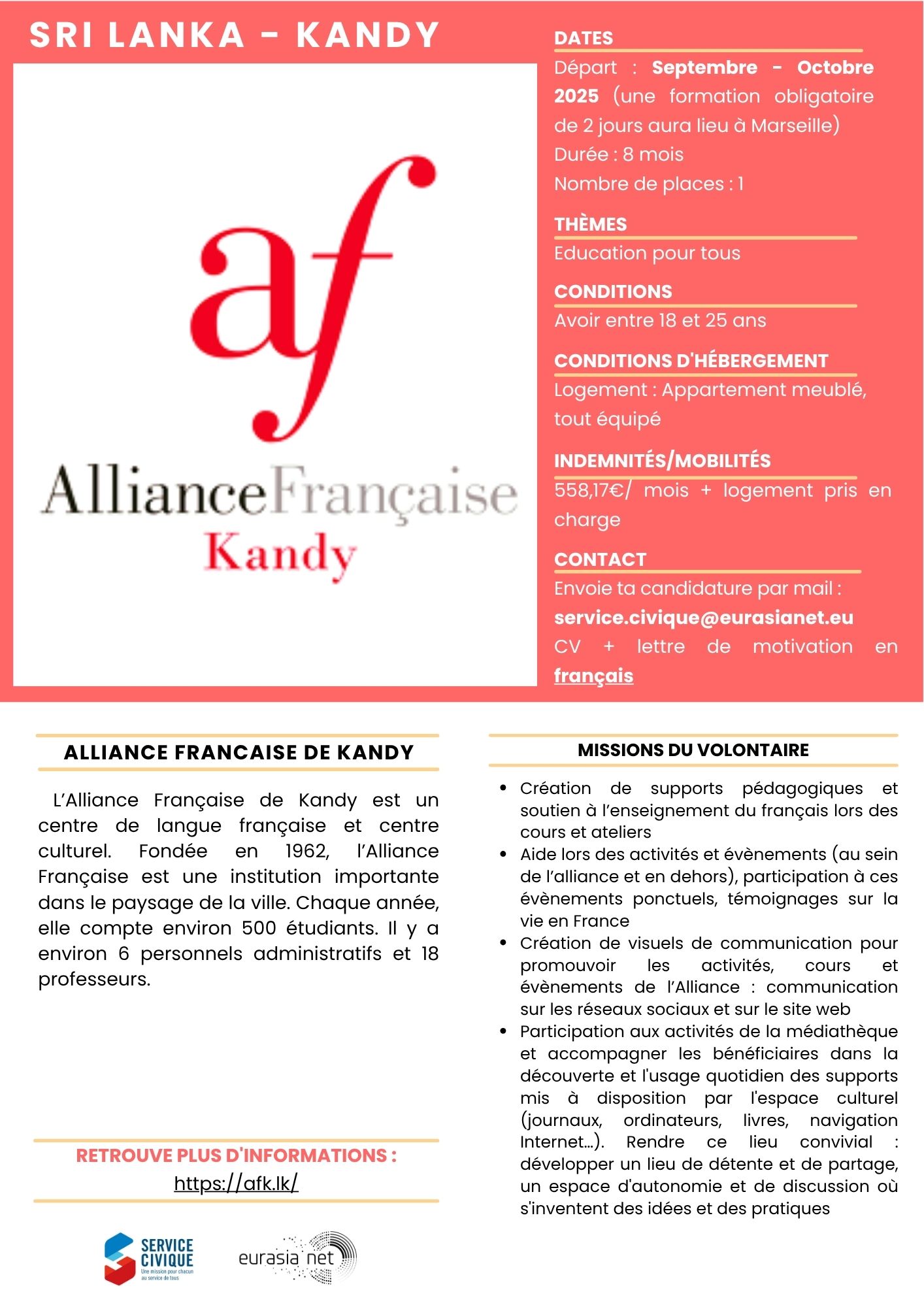 Le stagiaire s’impliquera dans la vie culturelle de l’AF.